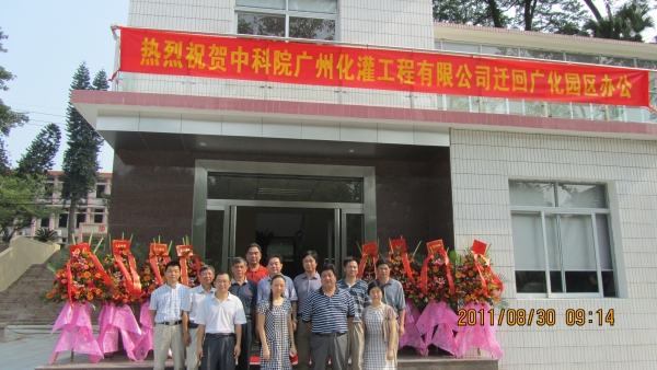 2011年8月30日,中科院廣州化灌工程有限公司(以下簡稱“化灌公司”)舉行隆重的遷回儀式,慶祝化灌公司搬回中科院廣州化學有限公司(以下簡稱“廣化公司”)園區并啟用裝修一新的辦公樓。