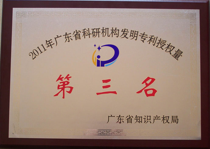 4月10日,廣東省知識產權局在廣州舉行“2012年全省4·26知識產權宣傳周活動方案發布暨國家知識產權局區域專利信息服務(廣州)中心揭牌、泛珠三角區域內地九省(區)專利信息運用合作協議簽署儀式”。會議向2011年全省專利發明授權量前三位的企業、高等院校、科研機構和PCT國際專利申請量前三位的企業、發明專利申請代理量前三位的代理機構頒發獎牌。我單位被授予“2011年廣東省科研機構發明專利授權量第三名”的獎牌。陳云賢副省長到會講話并代表廣東省人民政府對獲獎單位表示熱烈的祝賀。