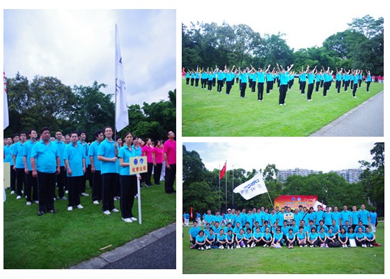當(dāng)天上午,來(lái)自兩院共十八個(gè)單位代表隊(duì)齊聚華南植物園大草坪,在主席臺(tái)前整齊列隊(duì)。在簡(jiǎn)短的開(kāi)幕儀式之后,各代表隊(duì)依次進(jìn)行第九套廣播體操展示。廣州化學(xué)代表隊(duì)精神飽滿,高喊著“全民健身、增強(qiáng)體質(zhì),和諧發(fā)展、幸福廣化”,士氣高昂地步入展示場(chǎng)地。隨著廣播體操的音樂(lè)響起,廣州化學(xué)代表隊(duì)以標(biāo)準(zhǔn)的動(dòng)作、整齊劃一的隊(duì)伍充分展現(xiàn)廣州化學(xué)職工健康向上的精神風(fēng)貌。此外,我公司控股企業(yè)廣州化灌工程有限公司也組隊(duì)參加了本次活動(dòng)。