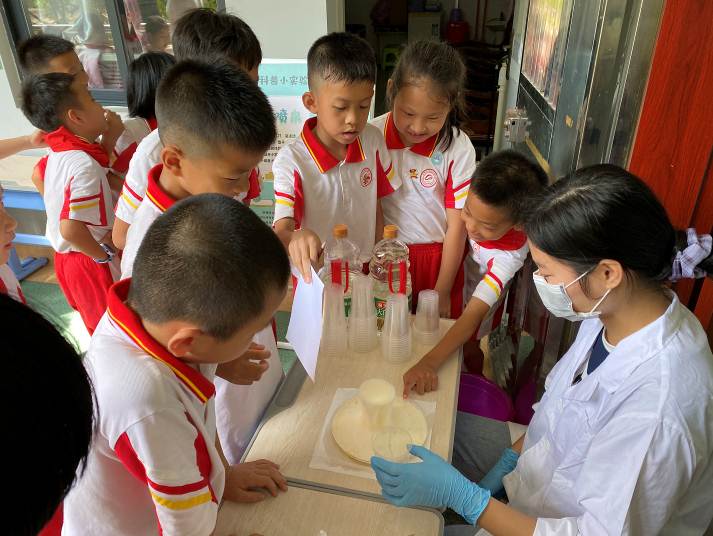 5月18日,中科院廣州化學有限公司(廣州化學)“化學科普小實驗”活動走進廣州市天河區長湴小學(長湴小學)。廣州化學科普團隊為長湴小學低年級同學們準備了水中彩虹、泡沫噴泉等多個化學科普小實驗。