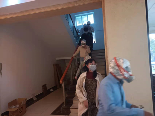 最后進行了火災疏散演練,模擬實驗樓進行火災緊急疏散。工作人員拉開了煙霧彈,頓時實驗大樓煙塵滾滾,參加演練人員在模擬進行必要的防護后,緊張而有序的從指定逃生通道安全撤離,消防演練完美結束。